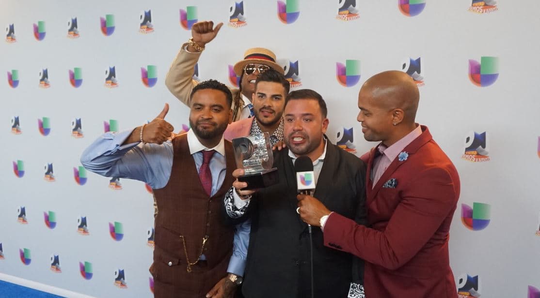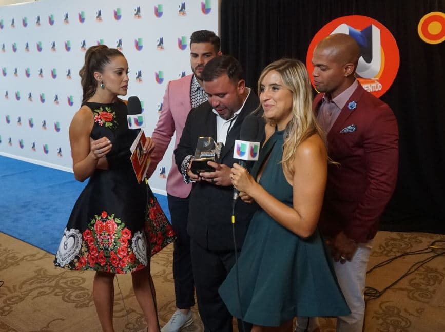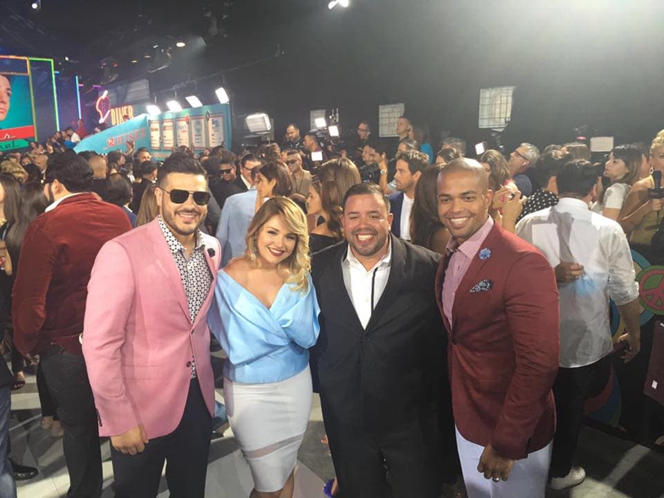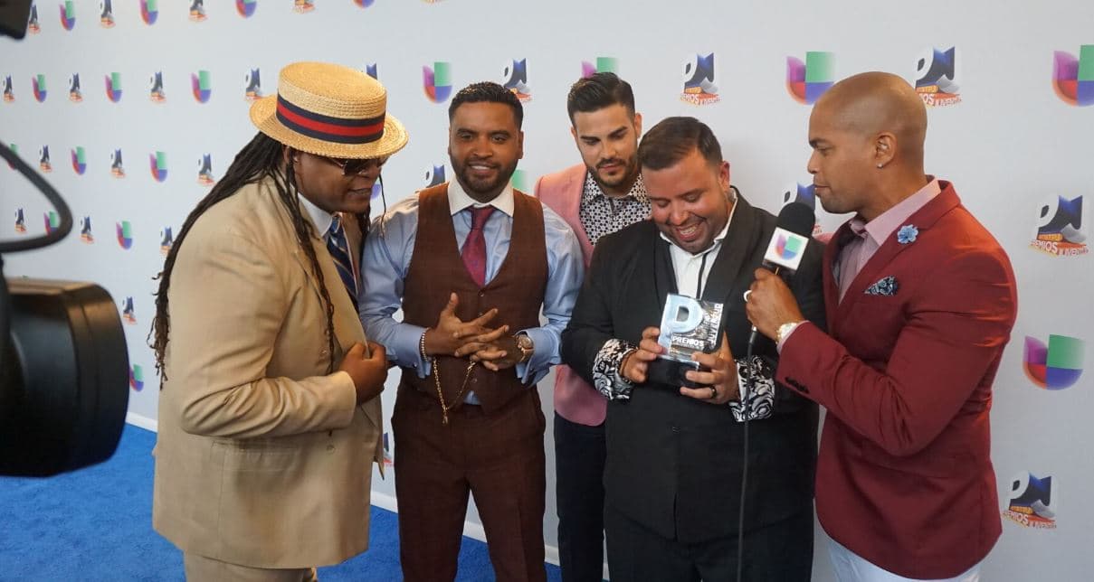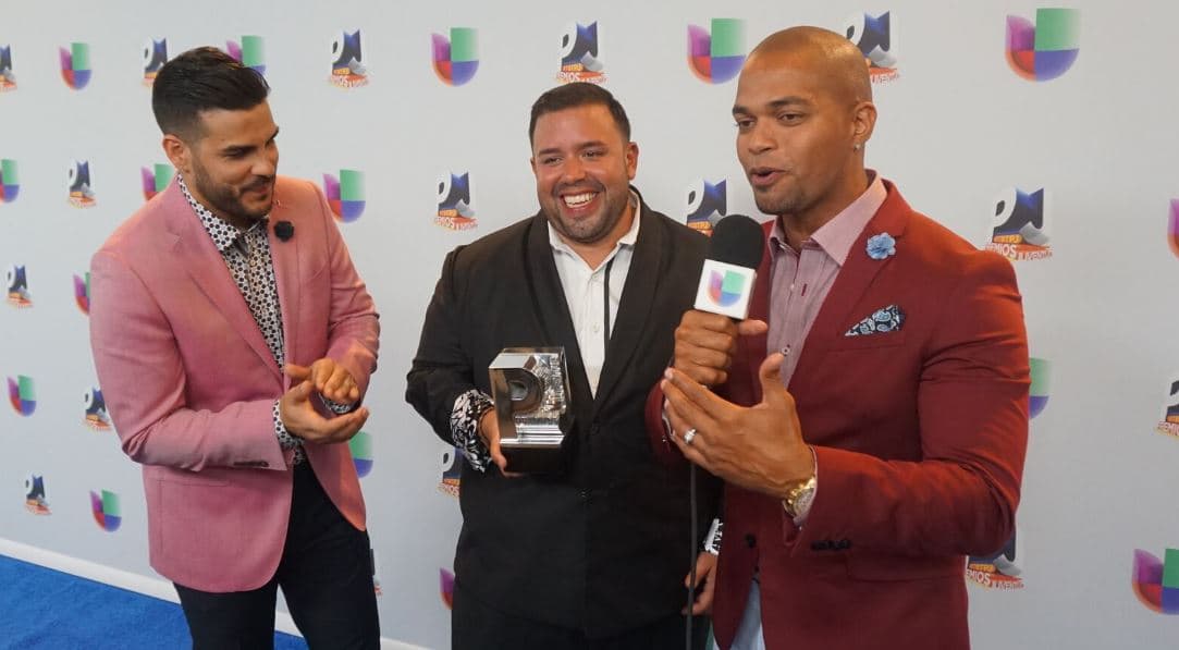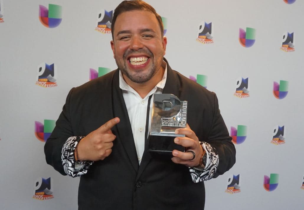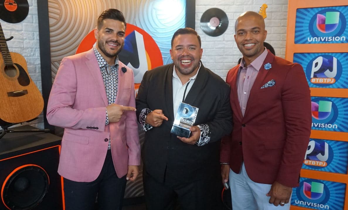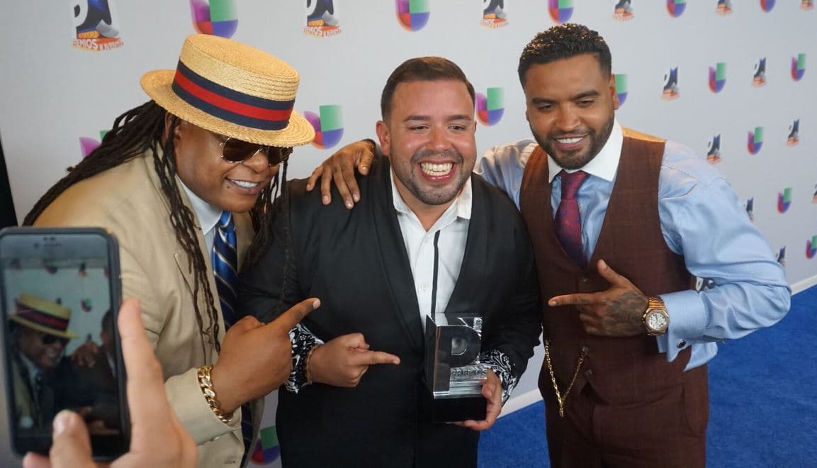 El locutor recibió el premio 'Qué Actorazo' de manos de José 'El Negro' Figueroa y Víctor Santiago, quienes viajaron a Miami para Premios Juventud.