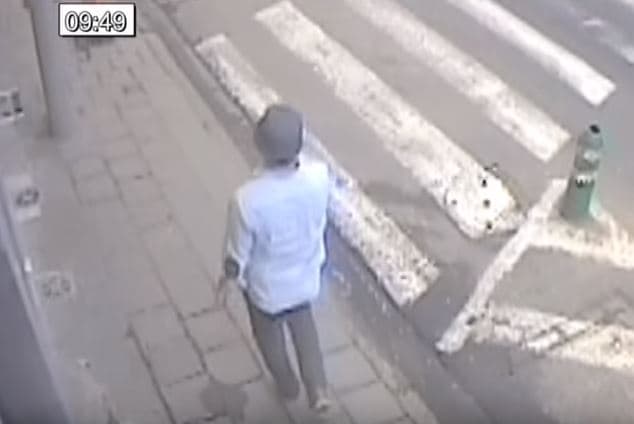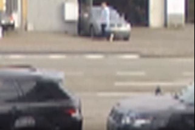 8:50: Casi una hora más tarde, fue captado por las cámaras en una rotonda vestido con una camisa azul clara y con las mangas subidas.
