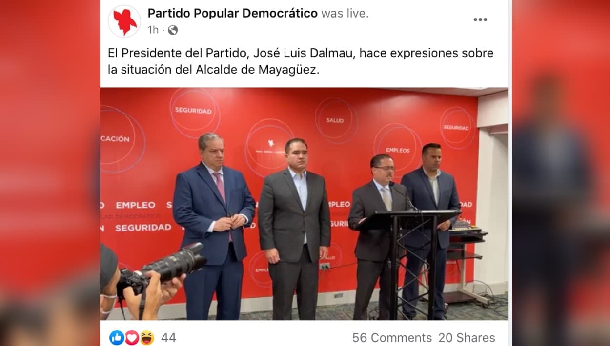 En una vespertina conferencia de prensa, el presidente del Partido Popular Democrático (PPD), José Luis Dalmau, anunció la determinación. Horas antes, un panel del FEI ordenó la suspensión inmediata de José Guillermo Rodríguez como alcalde de Mayagüez.