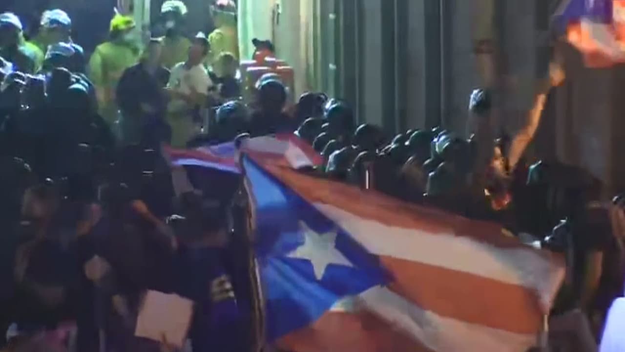Cientos de personas continúan en las afueras de La Fortaleza, que es resguardada por elementos de la policía y un helicóptero que hace labores de vigilancia. Aunque ha habido algunos conatos de violencia, las cosas se mantienen en calma.
