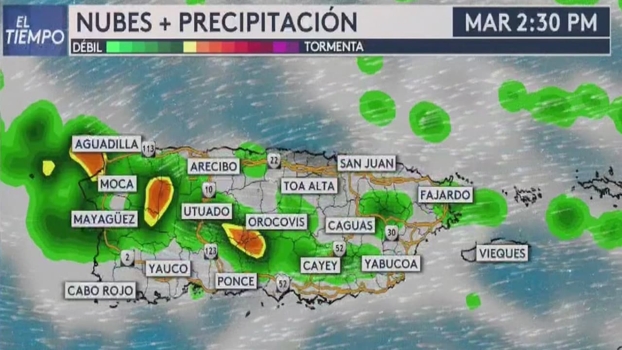 Se esperan precipitaciones que pueden llegar a ser intensas en Aguadilla, Mayagüez y Orocovis.