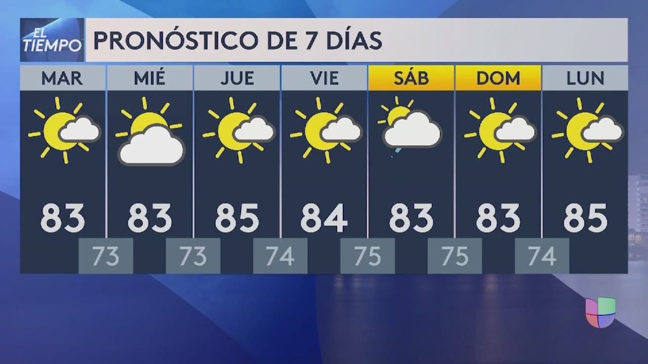 Para este martes se espera que las temperaturas máximas lleguen al nivel en los mediados 80 grados, con probabilidad de aguaceros pasajeros en horas de la tarde.