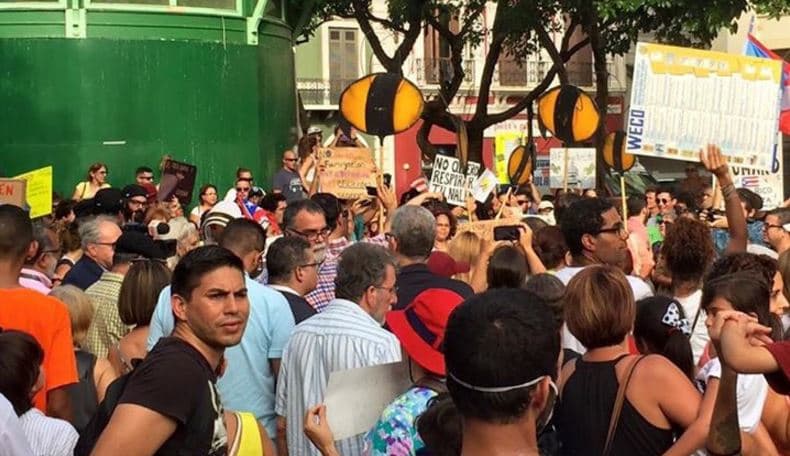 SAN JUAN, Puerto Rico. -Cientos de personas se manifestaron este miércoles en San Juan para tratar de impedir la fumigación aérea con Naled que el Gobierno de Puerto Rico estudia llevar a cabo para tratar de combatir la rápida propagación del virus del zika.