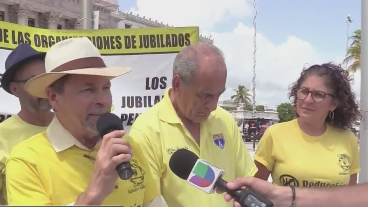 Un grupo de jubilados de la federación de maestros llegó a primeras horas de la mañana de este jueves para manifestarse por la nominación de Pedro Pierluisi, asegurando él jamás defendió sus pensiones.