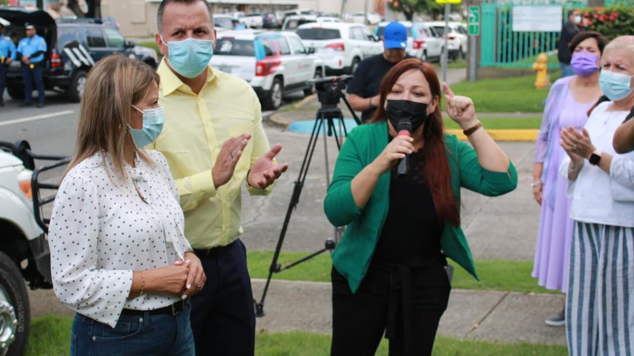 La alcaldesa Carmen Maldonado y un grupo de residentes de Morovis llegaron a las oficinas de la AAA para reclamar problemas en la distribución de agua potable.