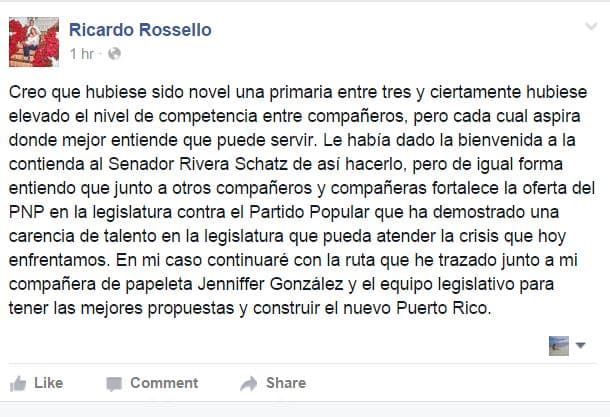 Se había dicho que enfrentaría en Primarias a Ricky Rosselló y a Pedro Pierluisi, pero no será así.
