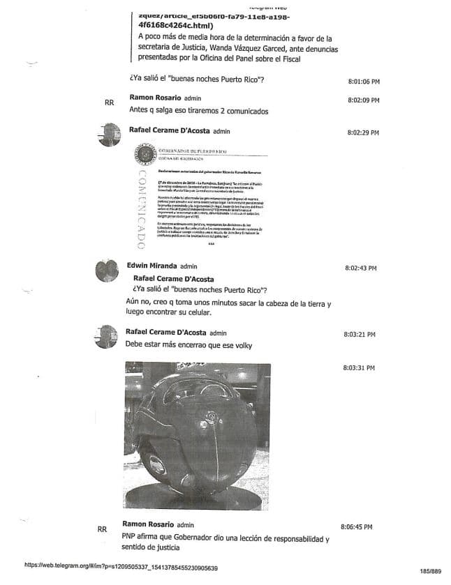 El abogado afirmó haber expresado que su cliente indica que el chat publicado fue alterado, no obstante, a preguntas de si Rosselló haría público la versión original, indicó que "ahora mismo yo no te puedo decir si él tiene el chat original, ese dato yo no lo tengo".