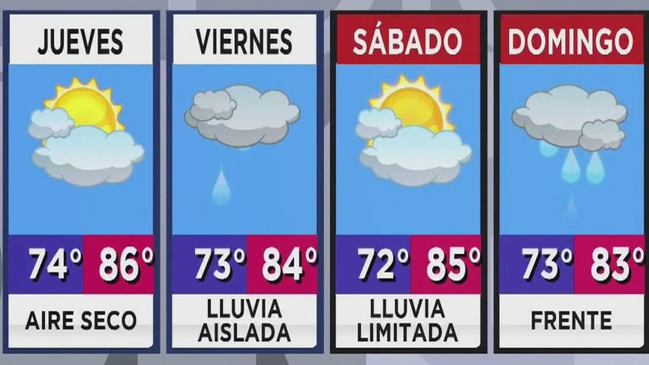 Por la mañana se esperan aguaceros aislados en la zona oeste de la isla, en el resto de la isla predominará el aire seco. Las temperaturas máximas serán de 86 grados.