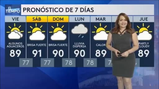Para este día se prevén algunos aguaceros a lo largo de la isla, con temperaturas máximas cercanas a los 90 grados.