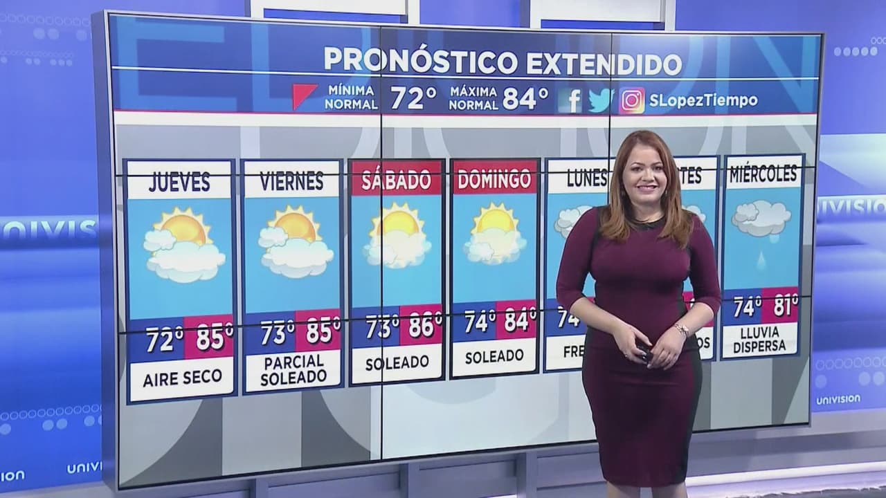La posibilidad de precipitaciones estará limitada, con presencia de nublados ligeros y temperaturas máximas de 85 grados.