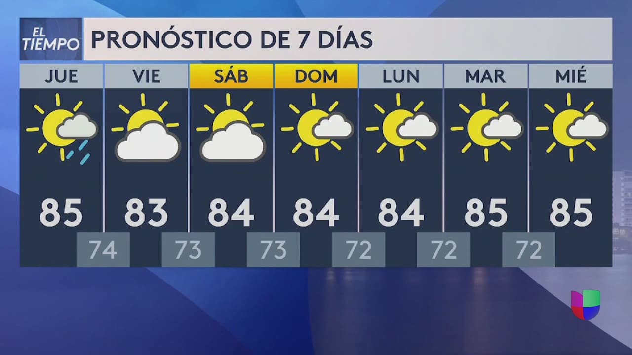 En general predominarán las condiciones agradables, con temperaturas máximas de 85 grados y probabilidad de aguaceros aislados.