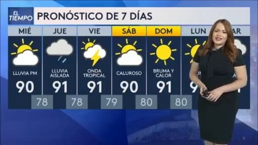 Durante horas de la tarde se esperan precipitaciones dispersas. Las temperaturas máximas llegarán a los 90 grados.