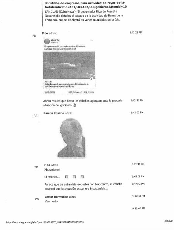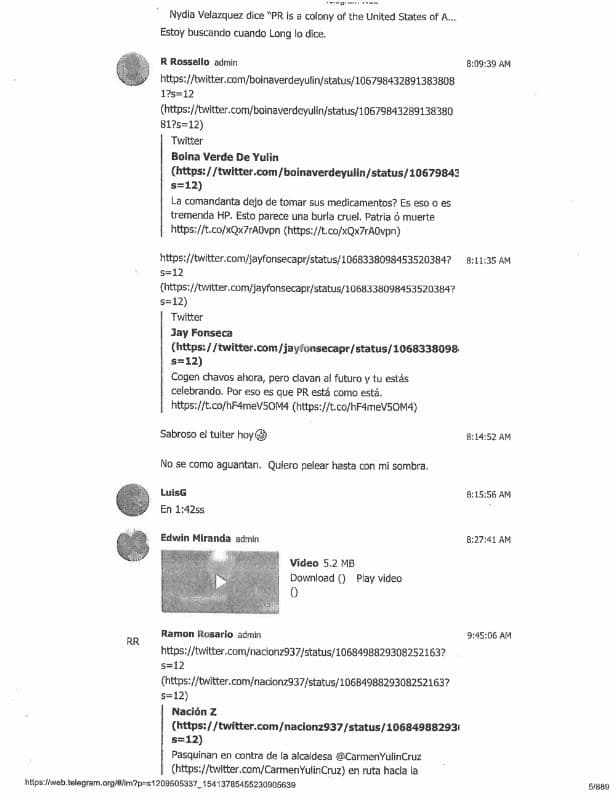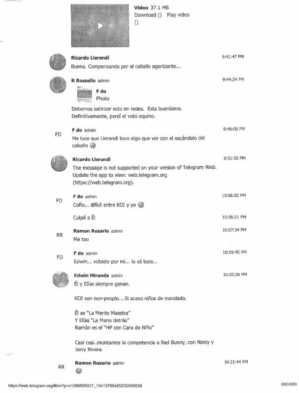 Se filtran más páginas del chat de Telegram: Arnaldo Claudio refiere la conversación al FBI