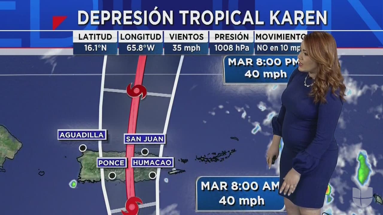 La depresión tropical Karen avanza hacia Puerto Rico con vientos sostenidos de 35 millas por hora, se esperan lluvias fuertes durante las próximas horas con acumulados de hasta 6 pulgadas.