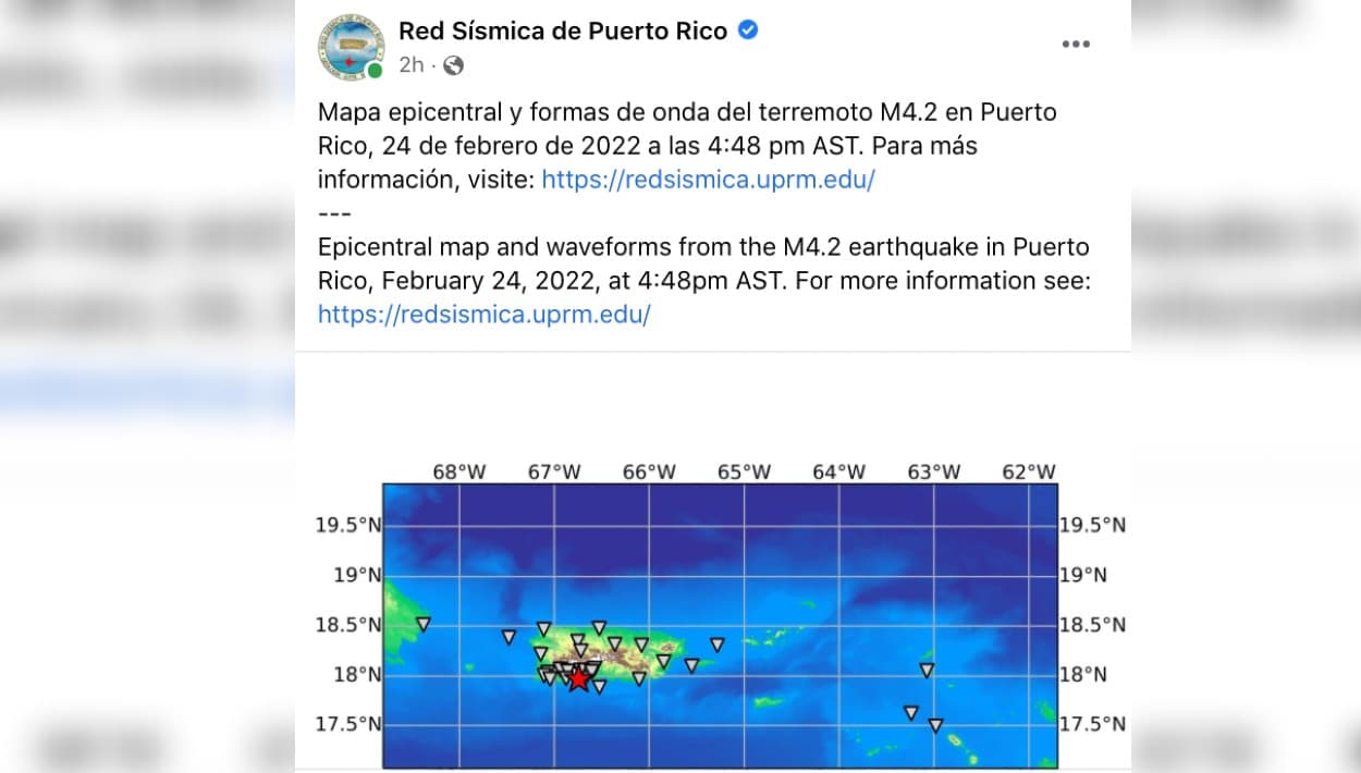 Imagen Facebook / Red Sísmica de Puerto Rico