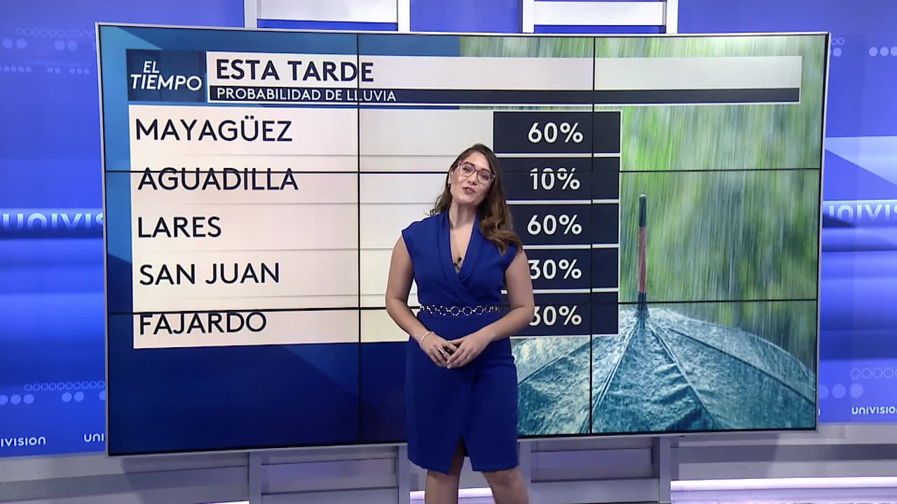 Espera una tarde con lluvias moderadas a intensas en la isla, con temperaturas máximas alrededor de los 90 grados Fahrenheit. Más sobre el pronóstico del tiempo en Puerto Rico con Karuska Matos.