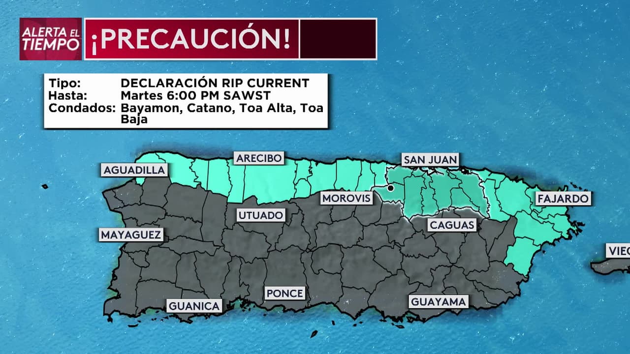 Evita nadar en las costas al norte de Puerto Rico pues se anticipan corrientes marinas peligrosas en la región. La temperatura oscilará cerca de los 80 grados Fahrenheit.