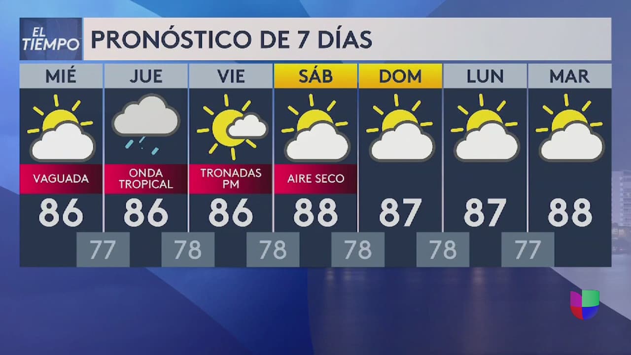 El modelo proyecta tronadas fuertes para la zona suroeste y a lo largo del día aguaceros intermitentes. Las temperaturas máximas llegarán a los 86 grados.