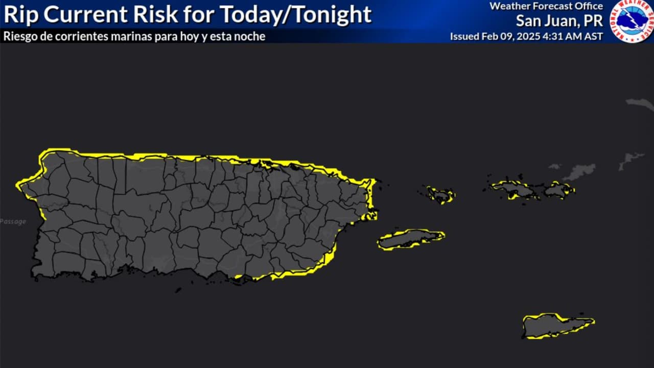 En cuanto a las condiciones del mar, se tiene un riesgo moderado de corrientes de resaca en la mayoría de las playas de Puerto Rico y las Islas Vírgenes de EEUU.