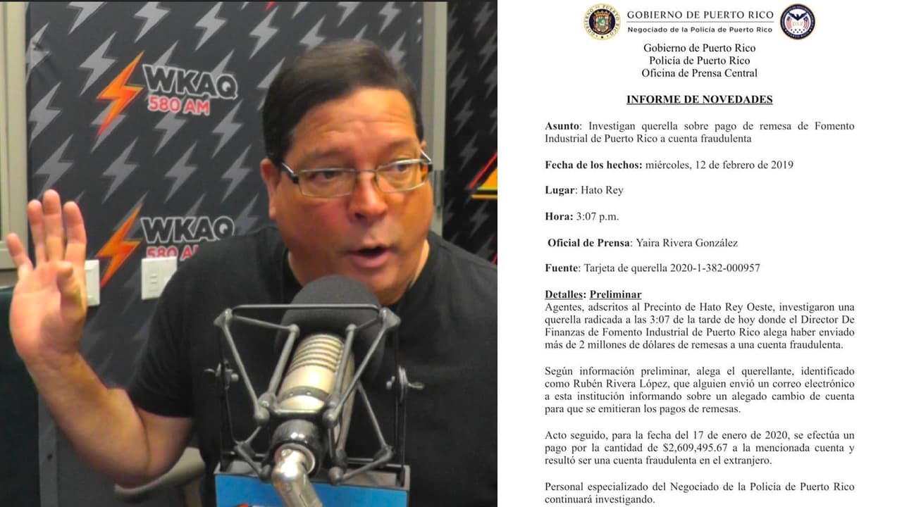 La querella fue sometida a las autoridades por el director de finanzas de PRIDCO, Rubén Rivera López. Según el informe policiaco, la transferencia se realizó el pasado 17 de enero por la cantidad de $2,609,495.67.
