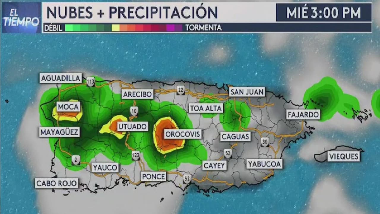Los efectos de esta vaguada continuarán durante este miércoles, con probabilidad de aguaceros y tronadas para horas de la tarde.
