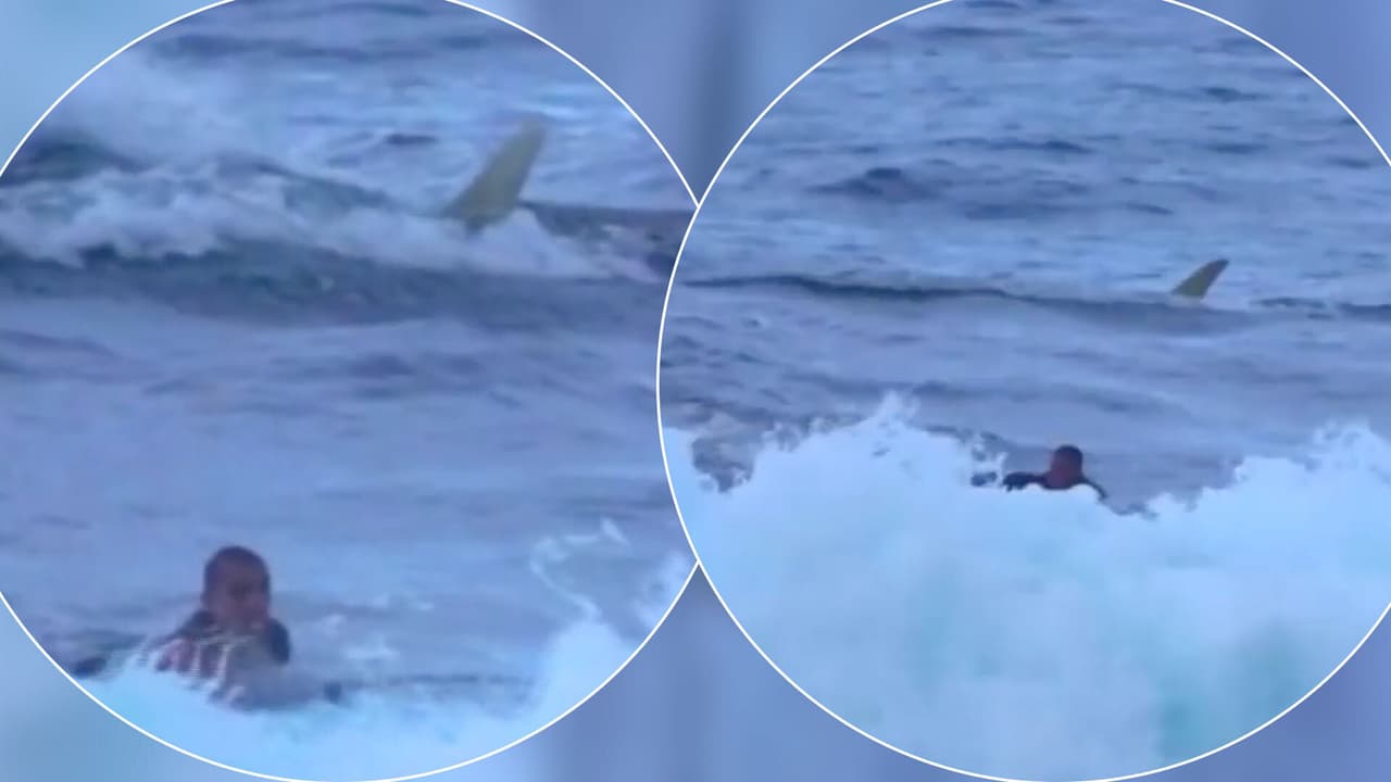 Video muestra el momento en que un tiburón nada a pocos metros de un surfista en la playa Middles