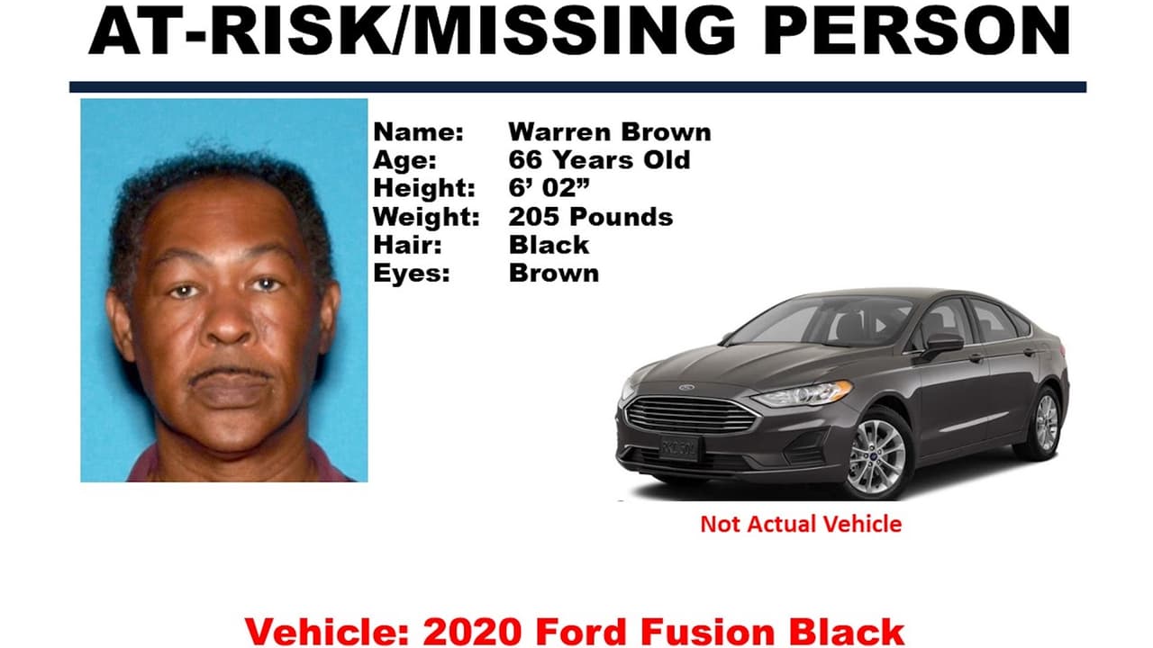 Brown conduce un Ford Fusion 2020 negro con un número de placa de California de 8RAA343, al momento de su desaparición vestía una chaqueta marrón y jeans azules.