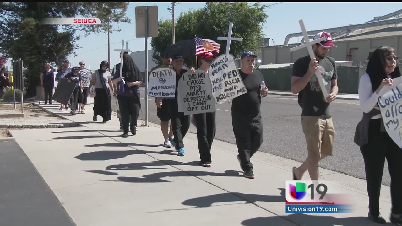 Los manifestantes recrearon un funeral para ejemplificar lo que ocurriría de ser aprobada la reforma de salud presentada por legisladores del Partido Republicano.