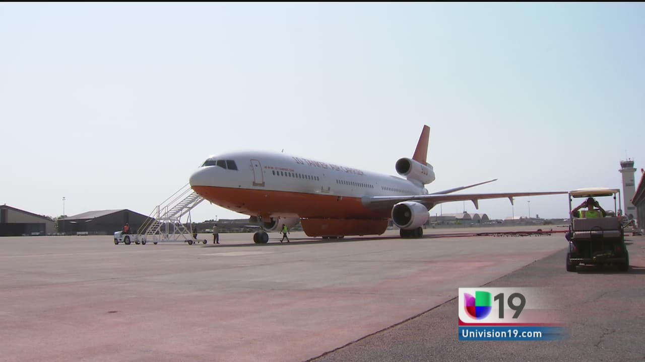 Aviones cisternas lanzan líquidos retardantes a los incendios, lo que constituye un gran apoyo para el control del fuego.