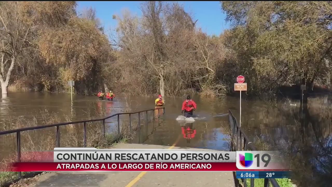 Bomberos de Sacramento llegaron este domingo al Río Americano tras haber sido alertados de que al menos 10 personas se encontraban atrapadas por los altos niveles del agua.