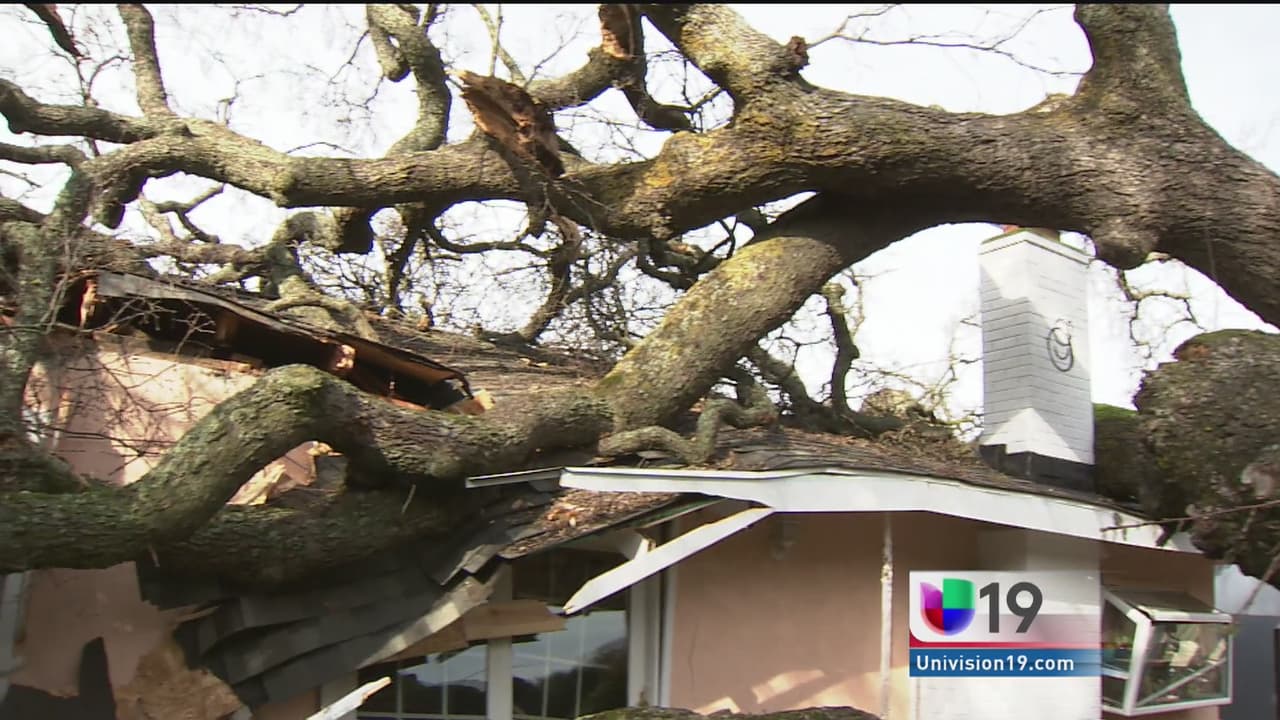 Lo que parecía un domingo tranquilo terminó en tremendo susto para una familia cuando un árbol gigante de su jardín cayó encima de su casa.