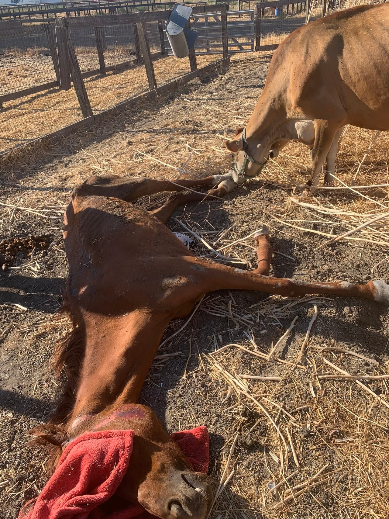 Luego de la denuncia, elementos del Departamento de Bomberos de Tracy y un veterinario llegaron al rancho para atender a los caballos y a otros animales.