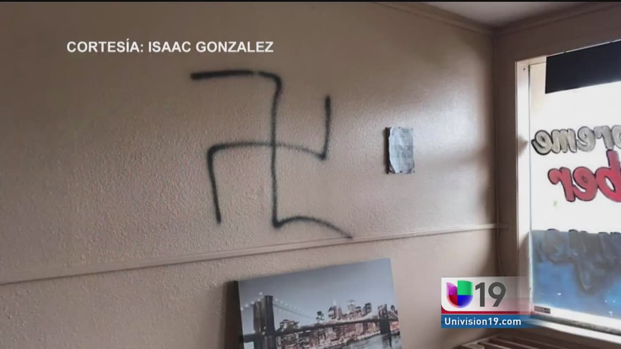 La policía pide la ayuda de la comunidad para encontrar a los responsables de romper vidrio y pintar grafitis ofensivos para la comunidad afroamericana como palabras ofensivas y suásticas.