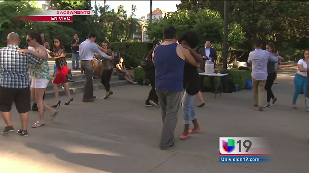 Empleados y aficionados disfrutaron una clase de salsa frente al capitolio de California, con el fin de conectar a la comunidad.