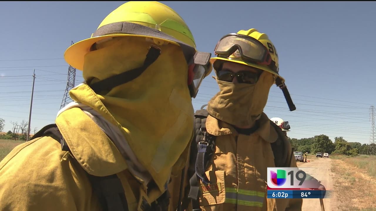 Los campos con maleza seca, cerca del río Americano, fueron intencionalmente quemada por los bomberos, la intención es eliminar estos campos que sirven como combustible para los incendios.
