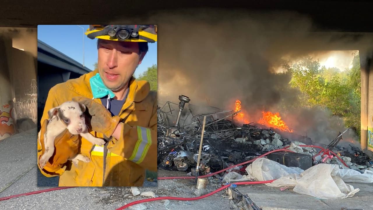 Cachorro sobrevive incendio en un campamento de personas sin hogar