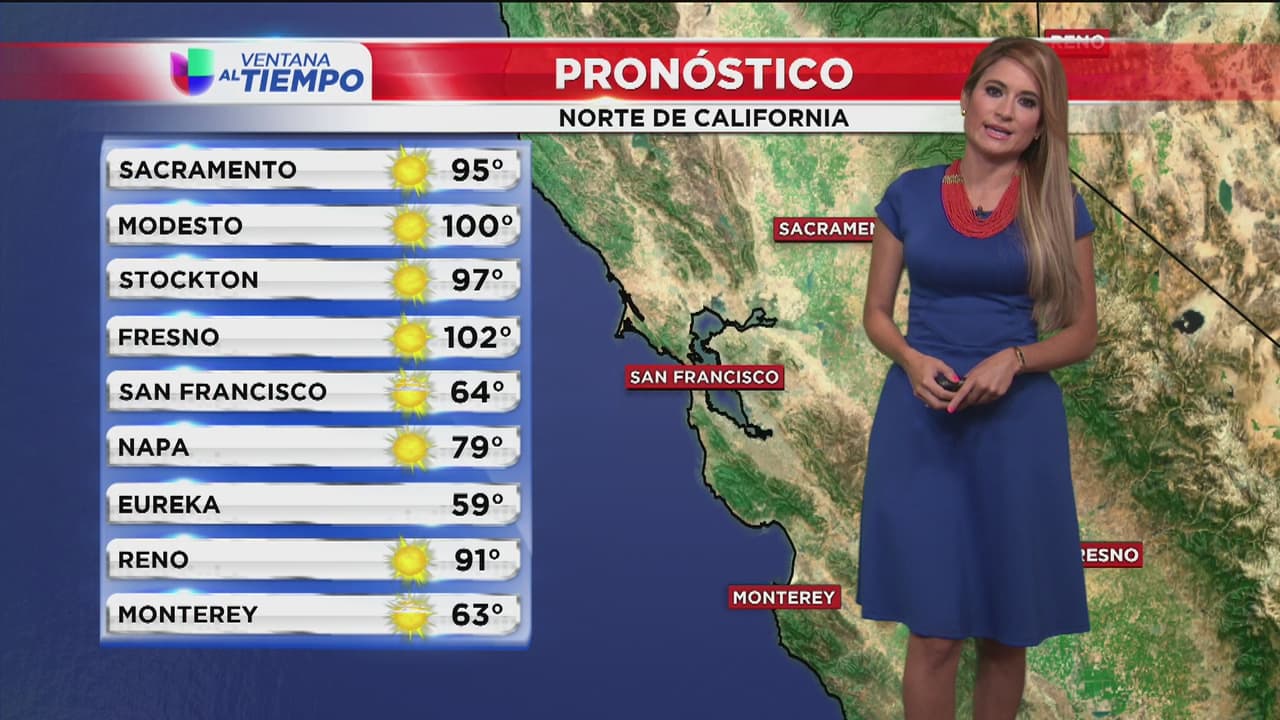 Un martes con temperaturas altas en la región, se espera que el termómetro llegue a los 95 grados en Sacramento, 100 en Modesto y 97 en Stockton. Manténgase hidratado.