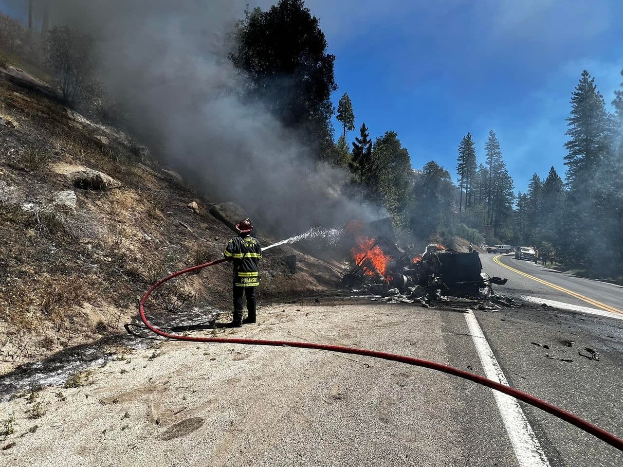 Autopista 50 bloqueada por incendio de camión de carga cerca de Kyburz