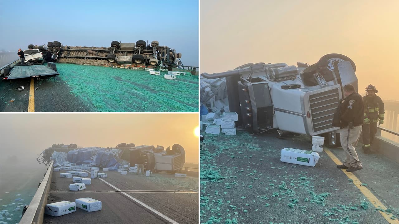 Camión volcado cerca del aeropuerto de Sacramento detiene el tráfico en la autopista I-5