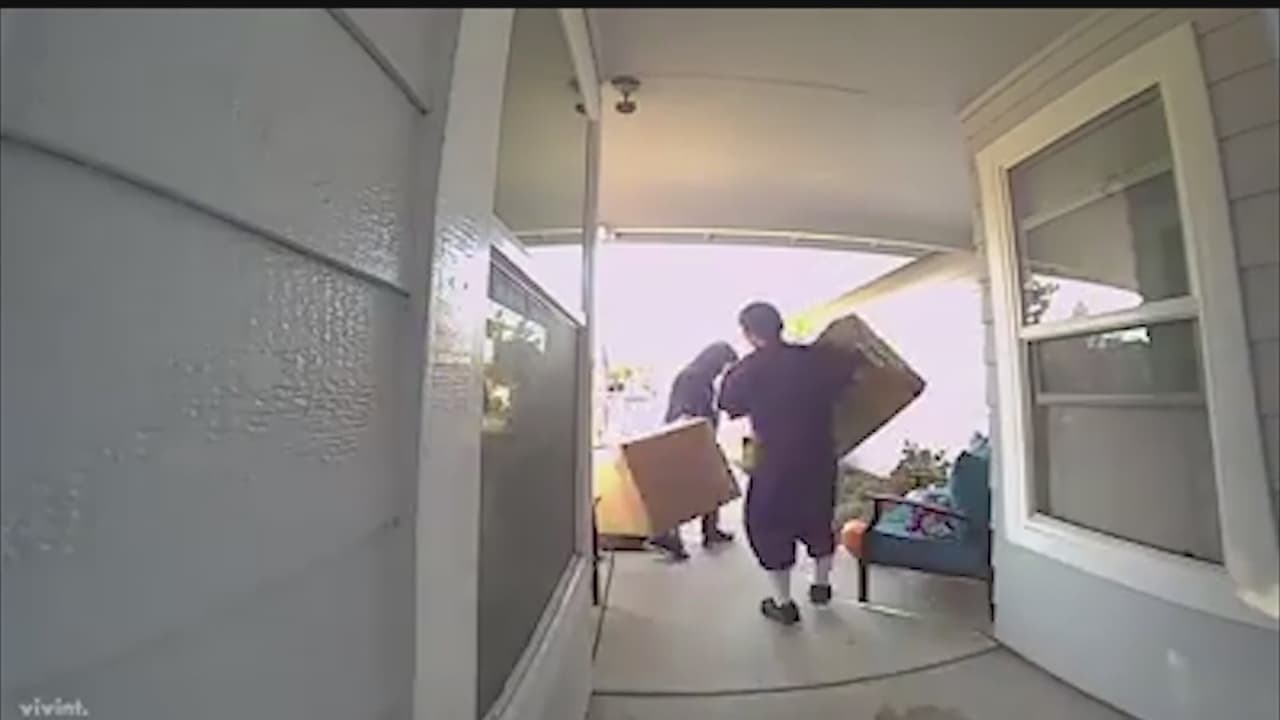Captan en video el momento en el que sospechosos roban paquetes en Stockton