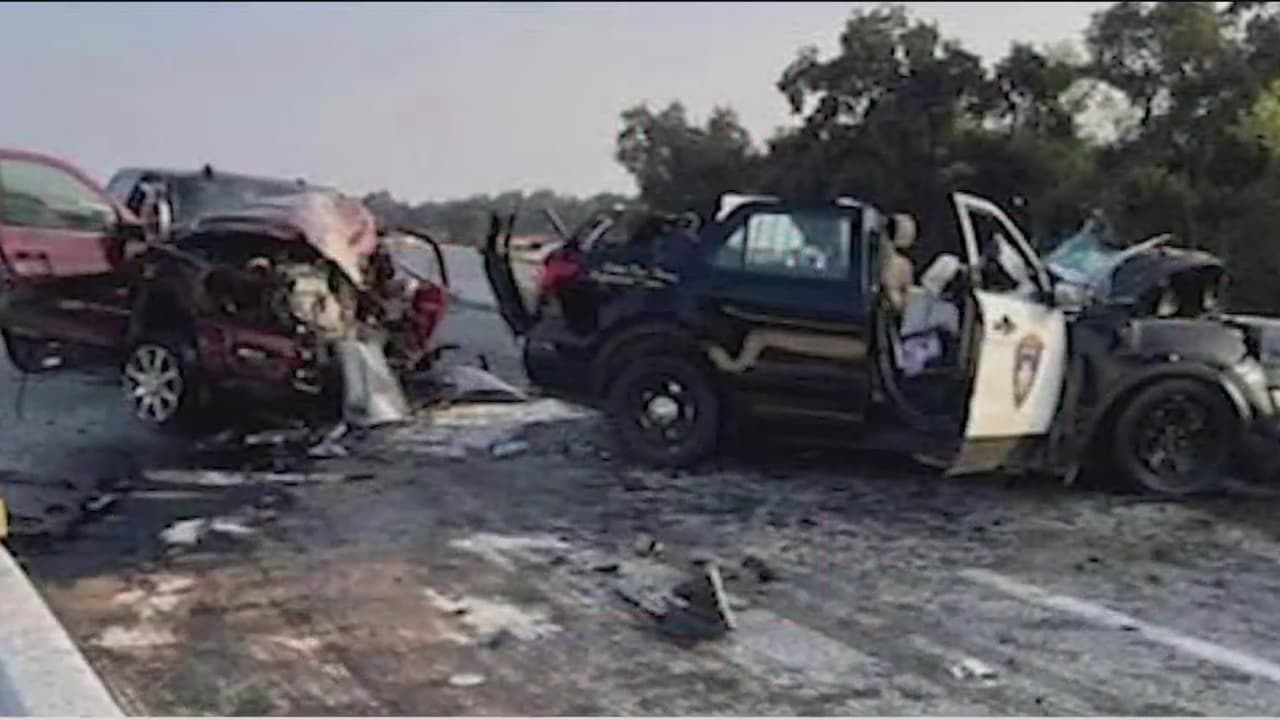 Una camioneta en la autopista 99 cruzó a los carriles en dirección opuesto y chocó contra una patrulla de la Policía de Galt. El conductor de la camioneta murió, y los dos pasajeros de esta, así como dos oficiales que viajaban en la patrulla, quedaron hospitalizados.