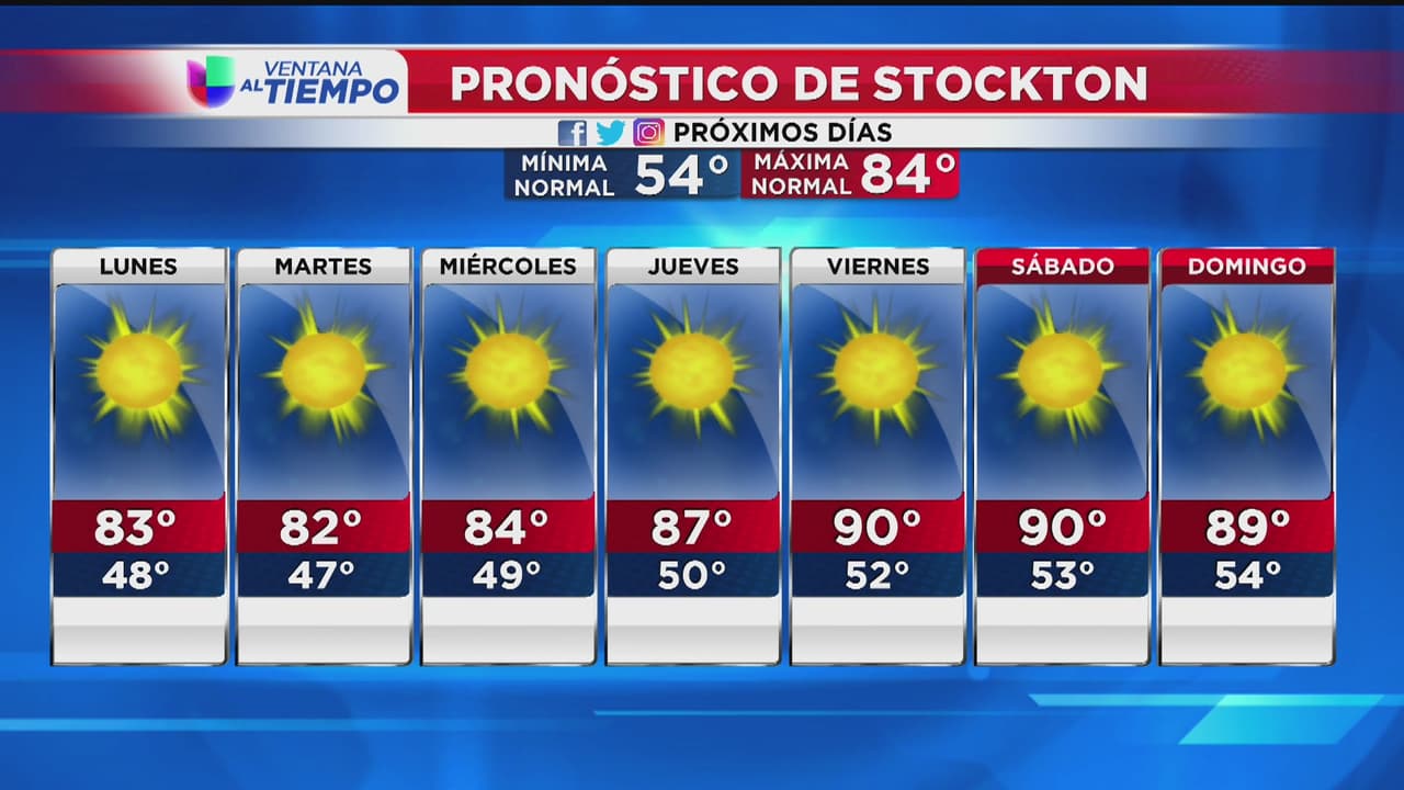 Un inicio de semana cálido al norte de California, las temperaturas máximas rondarán alrededor de los 80 grados y las mínimas estarán por los 40.