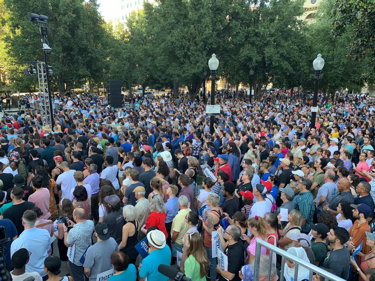 Por la tarde, Sanders organizó un mitin político en el parque César Chávez. Los cientos de espectadores comenzaron a llegar a las 4:30 pm, pero el evento no comenzó hasta as 6 de la tarde.