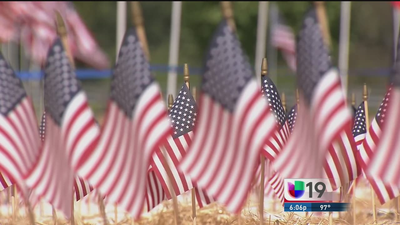 En West Sacramento recordaron a las tres mil víctimas mortales de los atentados del 11 de septiembre colocando banderas por cada uno de ellos.
