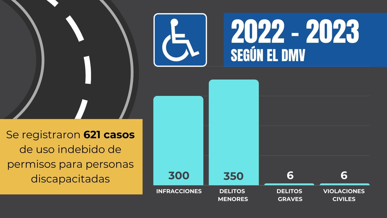 El Departamento de Vehículos Motorizados de California (DMV) estima que aproximadamente una de cada diez placas de estacionamiento para personas con discapacidades se utiliza incorrectamente.