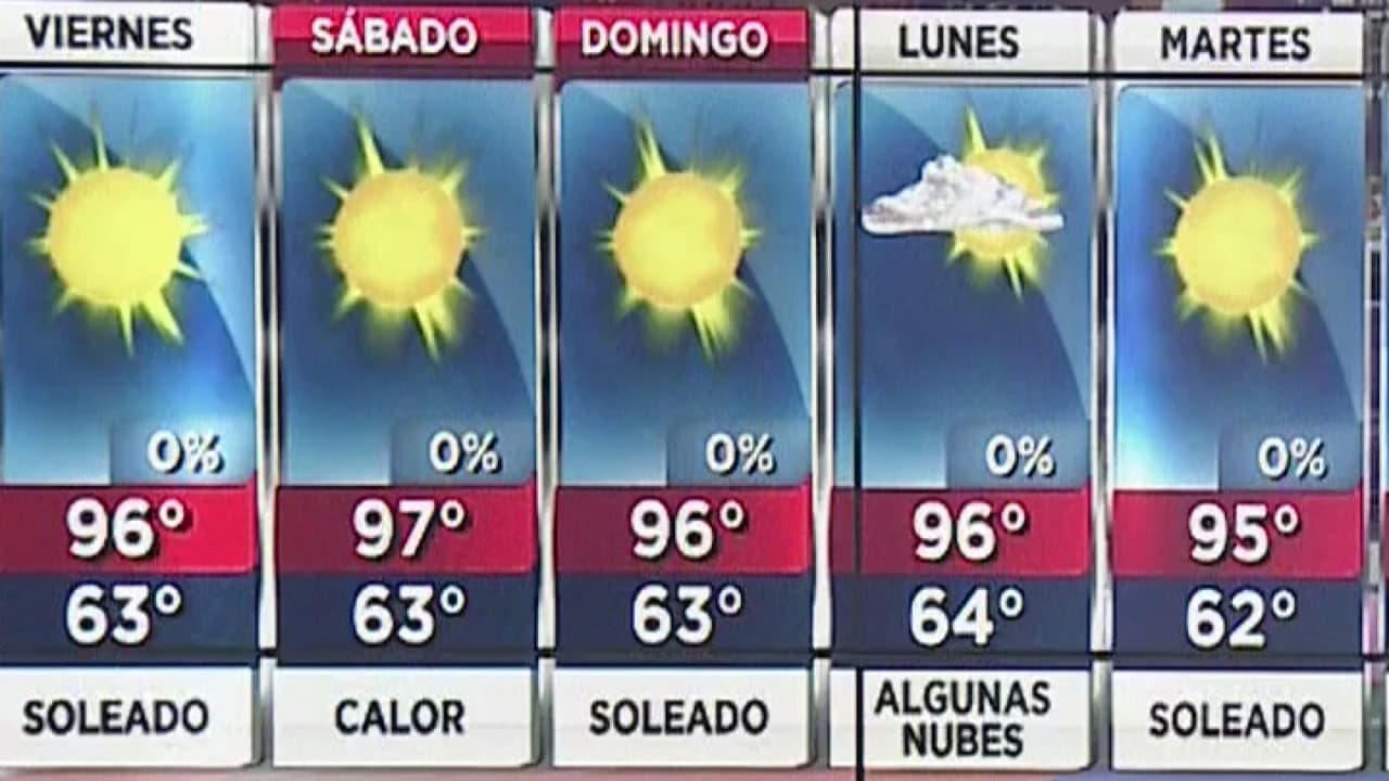 Se espera que las temperaturas máximas lleguen a niveles en los altos 90 grados, con cielos casi totalmente despejados.