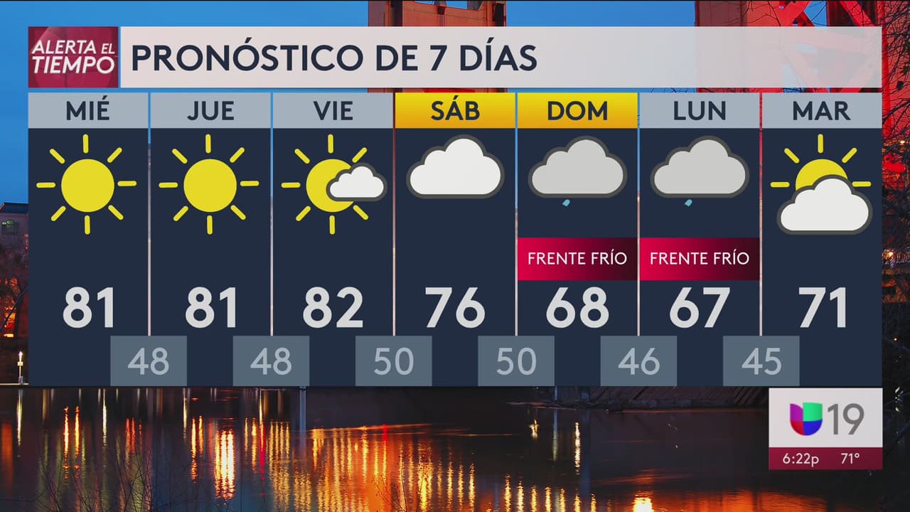 Continúan las mañanas frescas y tardes calurosas en la región para este miércoles se esperan condiciones secas y temperaturas de hasta 80°F para Sacramento, Stockton y Modesto.