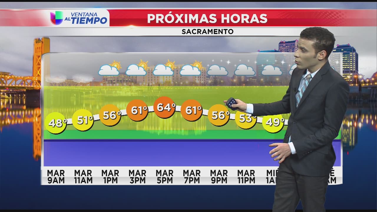 Espere cielos moderadamente nublados con temperaturas máximas de 64 grados alrededor de las 5 de la tarde.