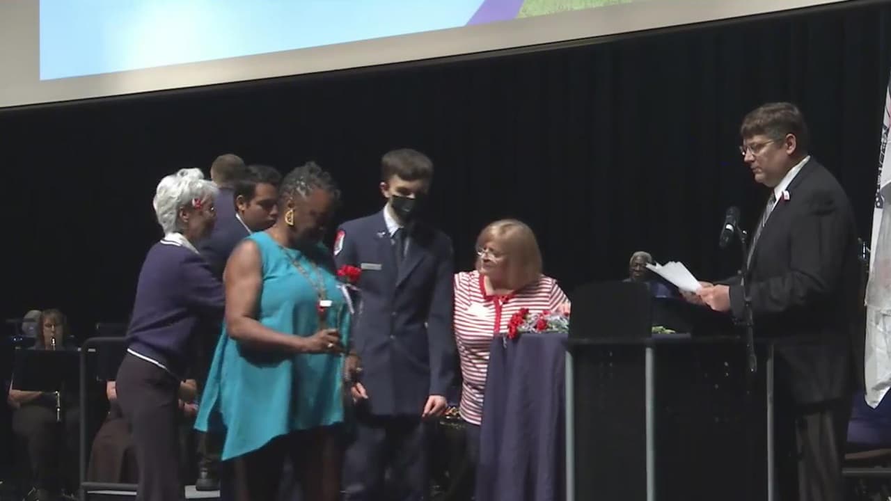 Veteranos y sus familias se dieron cita en la preparatoria Cordova, donde en una emotiva ceremonia se les entregó una flor en agradecimiento por su servicio a los Estados Unidos.