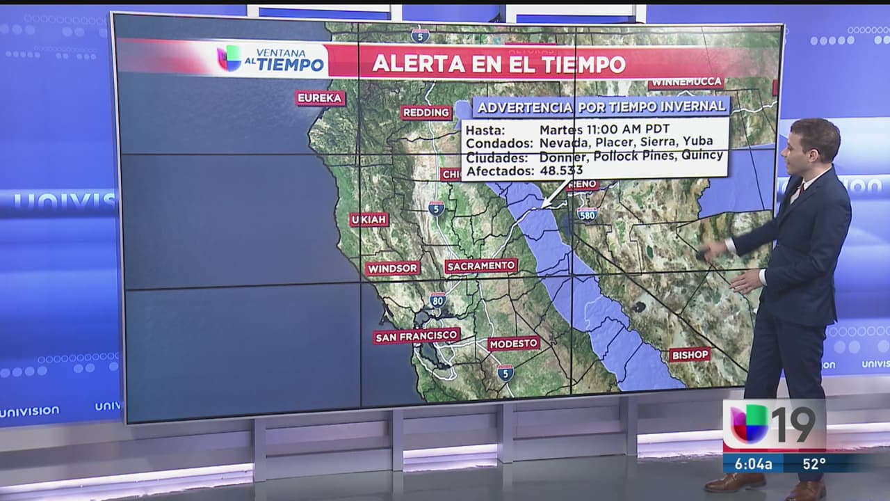 El meteorólogo Félix Hernández nos habla sobre las condiciones del tiempo que se esperan en Sacramento este martes y el resto de la semana. Continúa vigente la advertencia por tiempo invernal en algunos condados del norte de California.